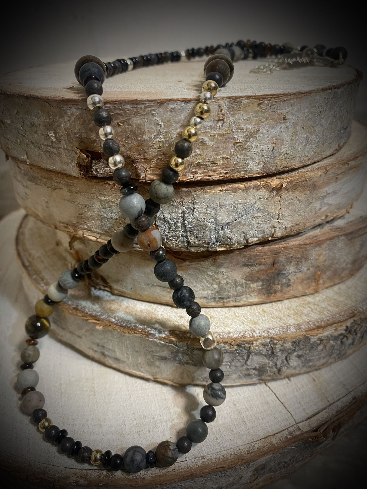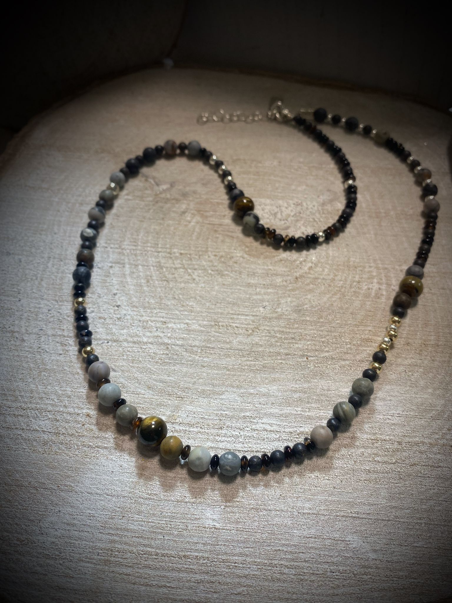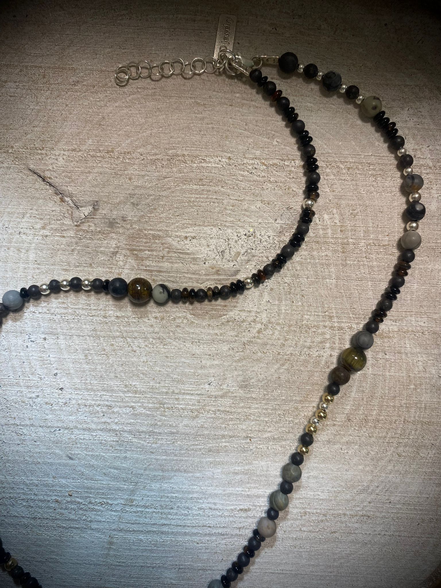 שרשרת חרוזים עשויה מאבני חן בשילוב חרוזי כסף925 וזהב גולדפילד 14K.